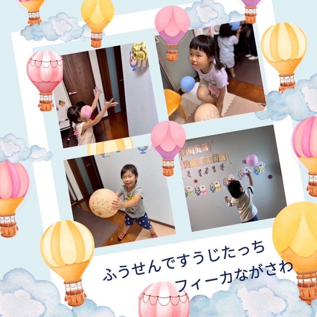 ランダムに貼ってあるすうじを探すだけでも大変ですが、風船を落とさないように維持するのも一苦労…😂