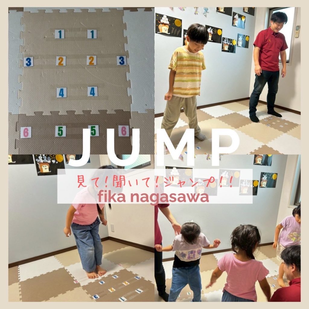 視覚的、聴覚的な情報(見て聞く)を元に、体を動かしてジャンプすることで、瞬発力、柔軟性、協応性、ボディイメージなどの運動能力を高め、感覚統合を促すことをねらいとした遊びです🤗